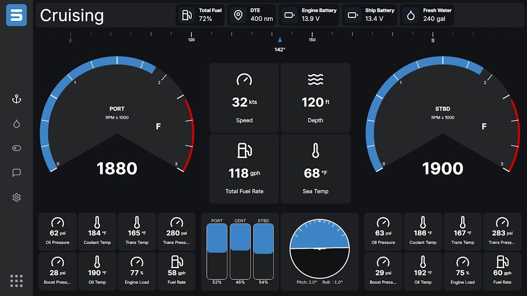 Integrates to any and all existing vessel systems. Including NMEA, switching platforms, engines, HVAC & more.